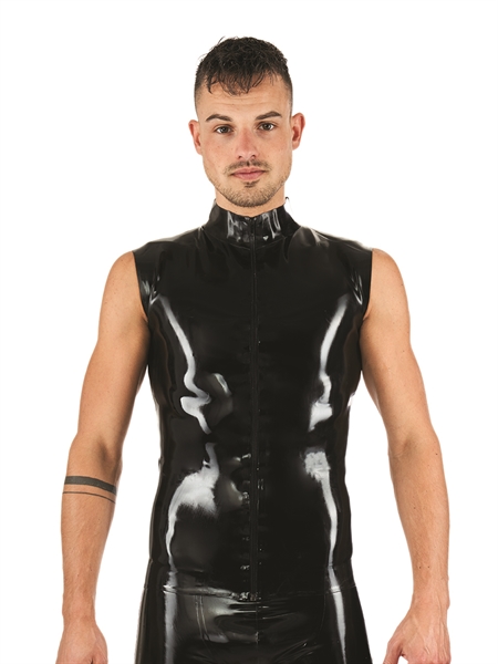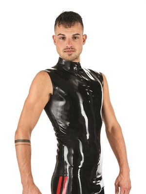 Dieses dickere ärmellose Shirt mit Reißverschluss passt wie angegossen. Wenn Sie es aufsetzen, passt es schön eng. Mit hohem Kragen und Frontreißverschluss ist dies ein perfektes Shirt, das Sie zusammen mit den Rubber Leggings oder den Rubber Fucker Shorts tragen können. Das Hemd ist 0,6 mm dick und hat einen 0,8 mm dicken Kragen. Fertig mit einem robusten schwarzen Reißverschluss vorne. P>